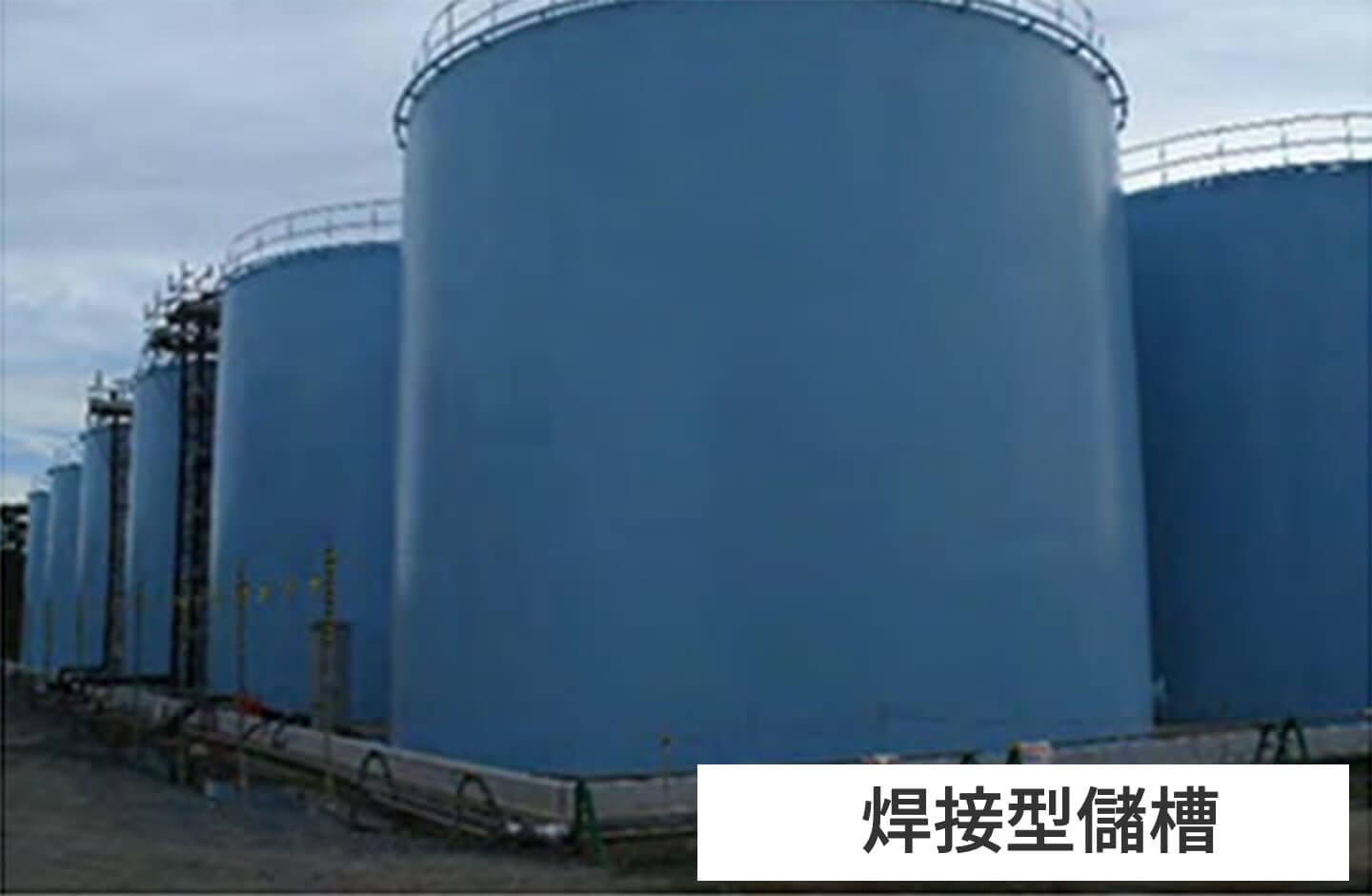 為保存事故發生不久後產生的污染水,我們順序拆除了以速度為優先所設置的組裝型(法蘭型)儲槽,並將其更換為洩漏風險較低的焊接型儲槽。部分剩下的組裝型儲槽的連接部(法蘭部件)則進行防漏水加工等止漏措施。